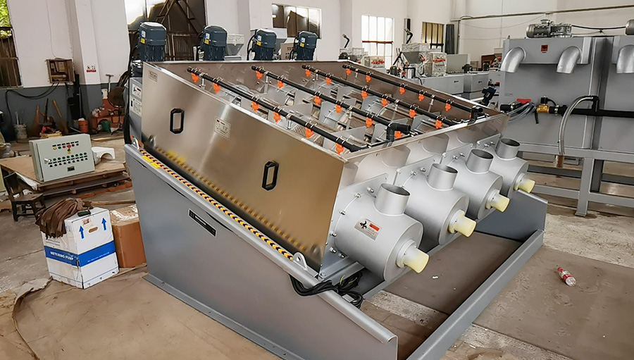 (脫水部分)脫水機的疊螺(luó)主體是由固定(dìng)環和遊動環相互層疊,螺旋軸貫穿其中(zhōng)形成的過濾裝置,集濃縮和脫水為一體(tǐ),前段為濃縮部,後段為脫水部。每個遊動環都鑲嵌在兩個固定環中(zhōng)間,之間形(xíng)成的濾(lǜ)縫以及螺旋軸的螺距從濃縮部到脫水部逐漸變小(xiǎo)。固(gù)定環、遊(yóu)動環(huán)的內徑和螺旋軸(zhóu)的螺(luó)旋直徑一(yī)樣,運行(háng)中幾乎沒有磨(mó)損;脫水部的終端有(yǒu)一個背壓板產生內壓。